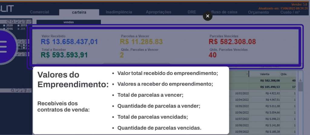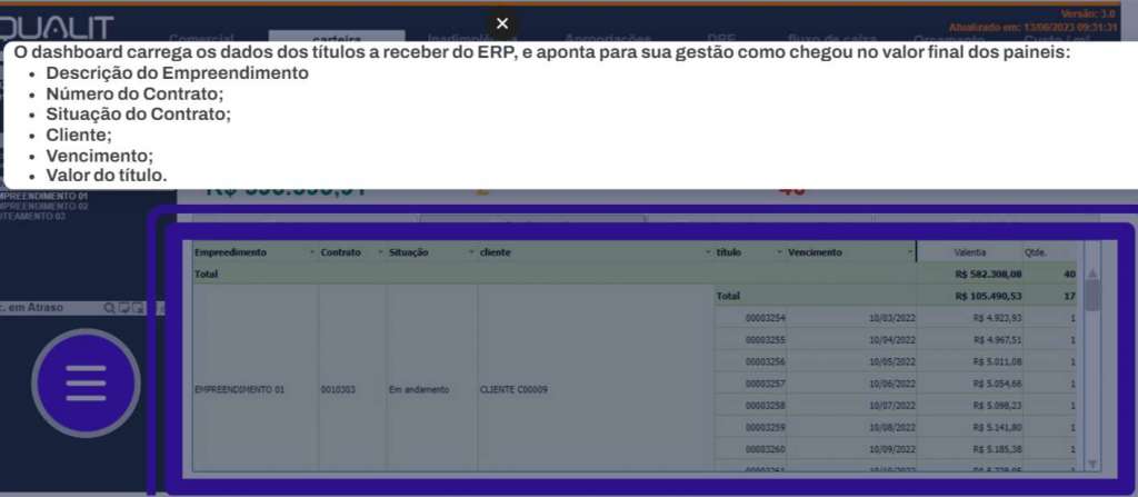 2.0. –  DashBoard ERP Qualit Construção – Carteira de Recebíveis.