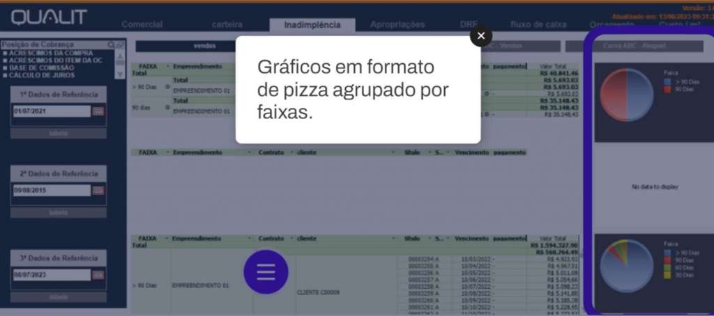 3.0. –  DashBoard ERP Qualit Construção – Inadimplência:
