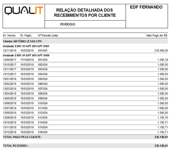 Sua empresa já deve saber da obrigatoriedade do informe de rendimentos do exercício aos seus clientes. De acordo com a legislação deverá ser feita até o último dia útil do mês de fevereiro do ano seguinte (IN RFB 1.215/2011), porém você já pode adiantar essa demanda. O ERP Qualit Construção possui uma grande variedade de relatórios, demonstrativos e fluxos que disponibilizam tais informações, porém, criamos um relatório com uma apresentação específica para entregar aos seus clientes para alimentar a declaração de imposto de renda, que é a Relação de Recebimentos por Agrupamento.